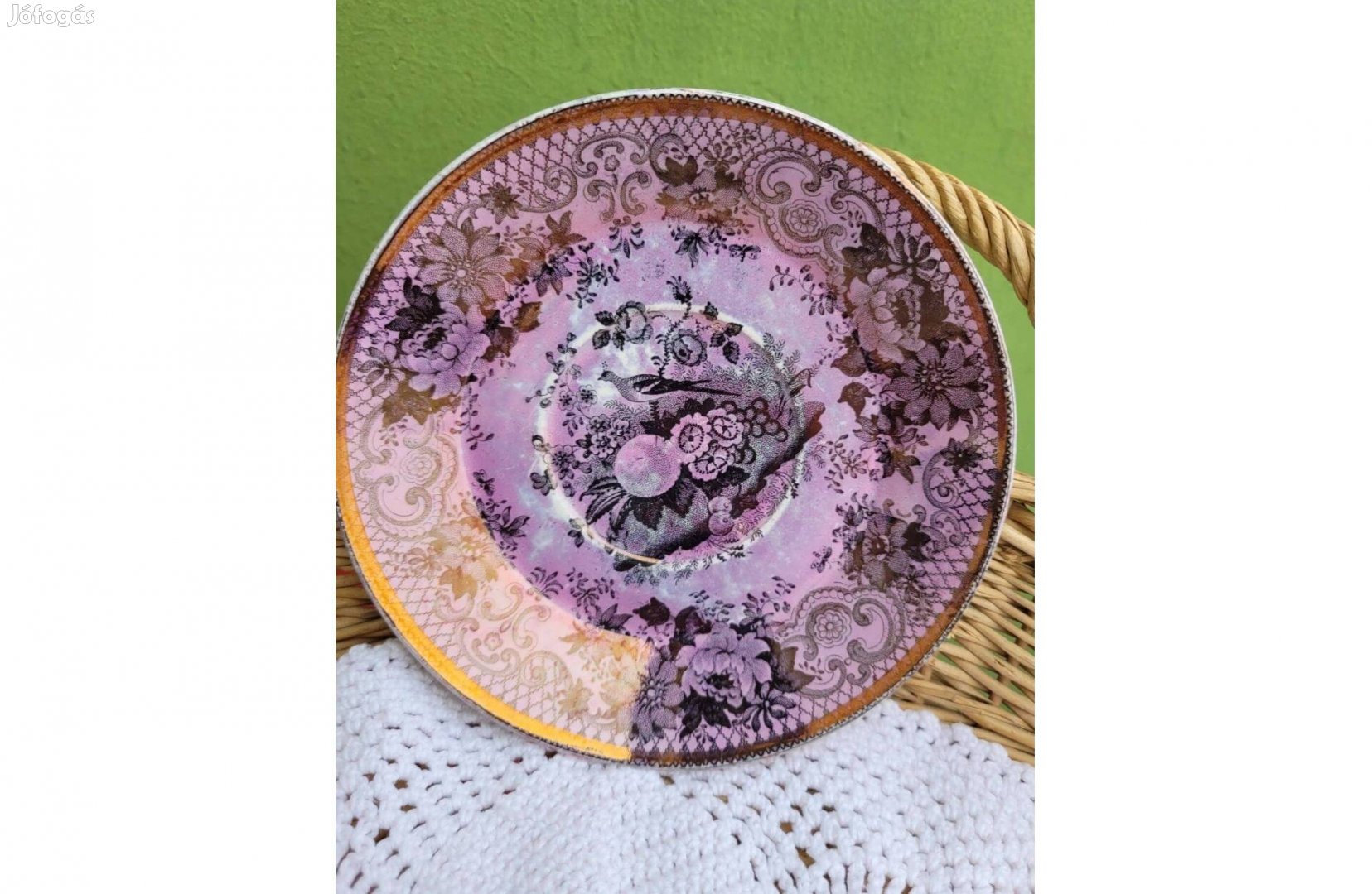 Antik Nightingale Davenport angol irizáló mázas fajansz kistányér