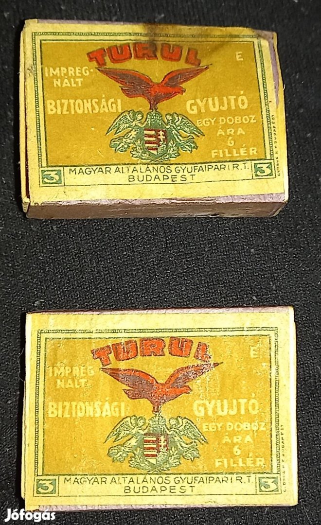2 DB, tökéletes állapotban lévő, Antik, Régi, Magyar Gyufásdoboz az 1900-as évek elejéről.