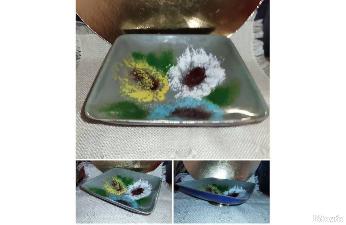 Antik Tűzzománc kínálótálka ,alján oxidáció