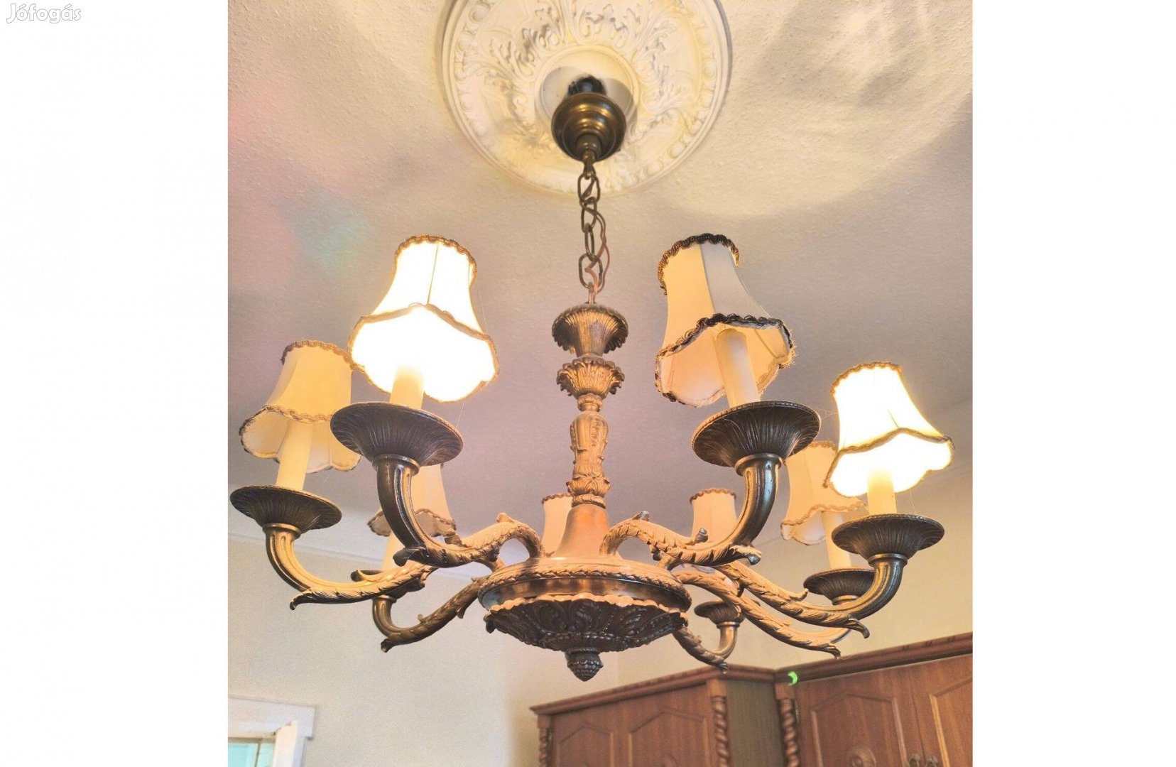 Antik, 8 ágú bronz csillár, szépen kidolgozott.