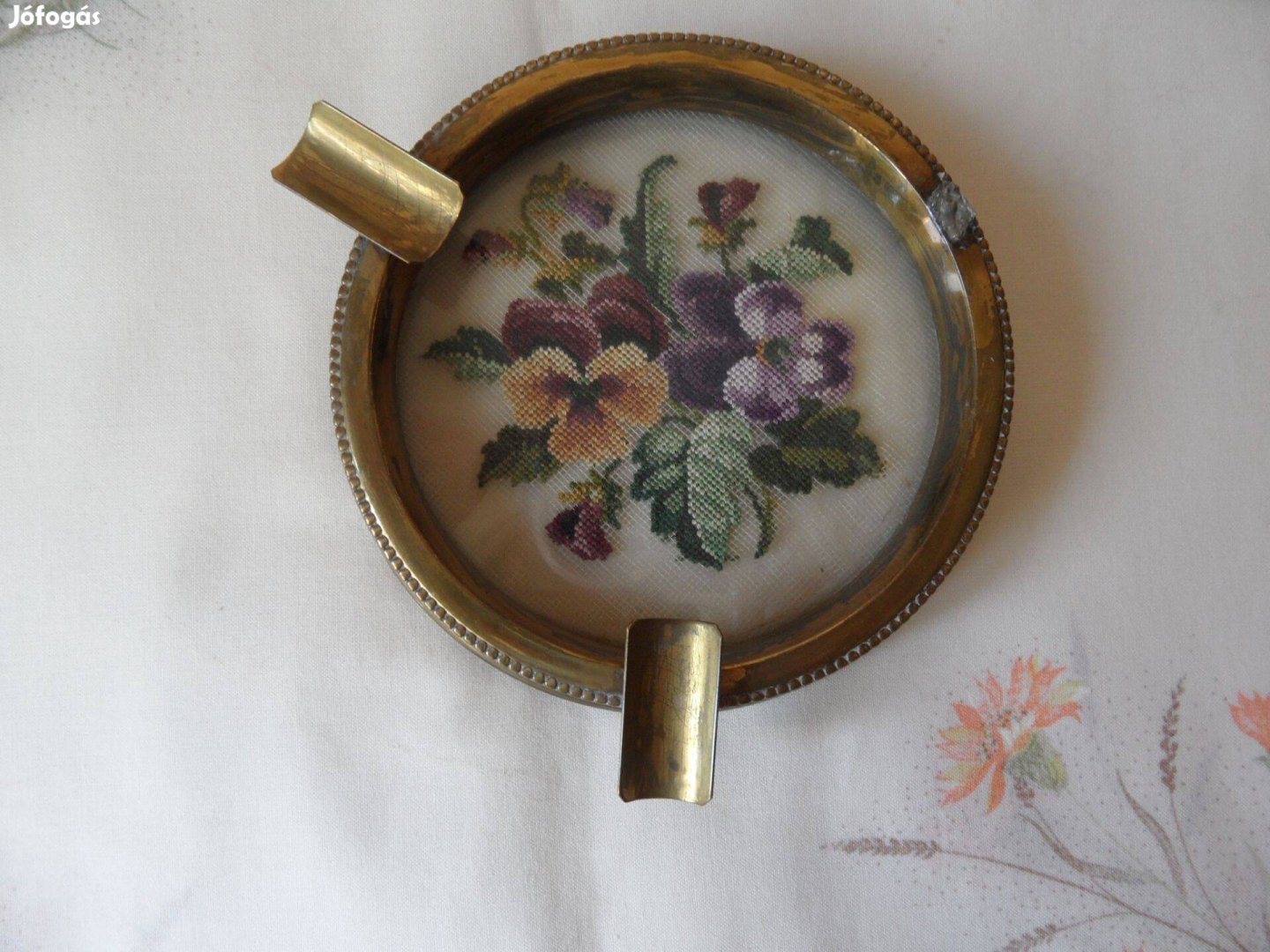 A képen látható Gobelin- réz hamutartó kis szépséghibával eladó. A peremén az egyik cigaretta tartó fül hiányzik, lásd fotó.