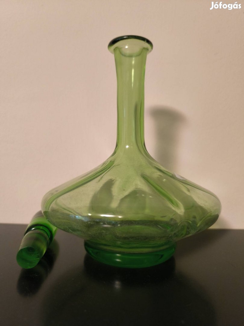 Antik, zöld, hibátlan, dugós italos üveg palack, ~25 cm magas.