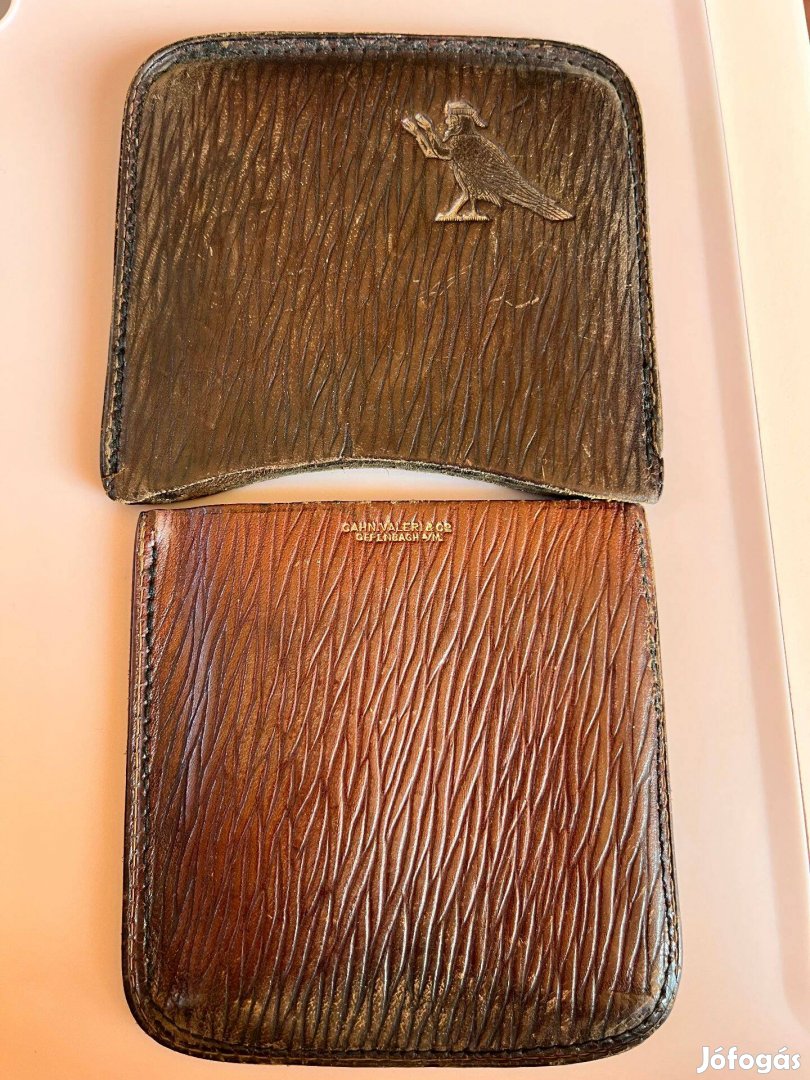 Eladó a képeken látható - Kairóban működött - brit-egyiptomi dohányipari vállalat által az akkori különleges ügyfeleknek készített díszes bőrtok. A tok előlapján nyomott díszítés - egyiptomi ikonográfiát idéző madárdombormű Hórusz madara (amely az ókori Egyiptomban fontos vallási és hatalmi szimbólum volt), a belső oldalon aranyozott felirat, amely a cég nevét és székhelyét (Kairót) hirdeti.