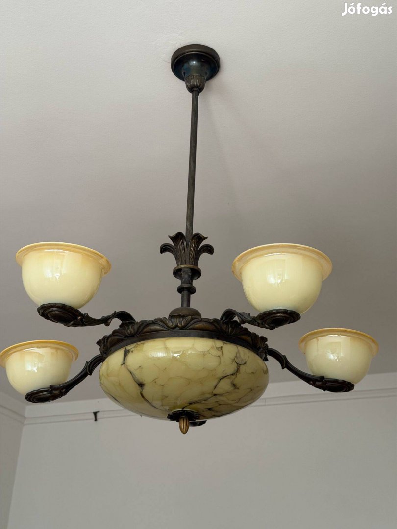 Eladó antik 1920-as vagy 1930-as évekből származó, ötkarú csillár, szecessziós vagy art deco stílusú.