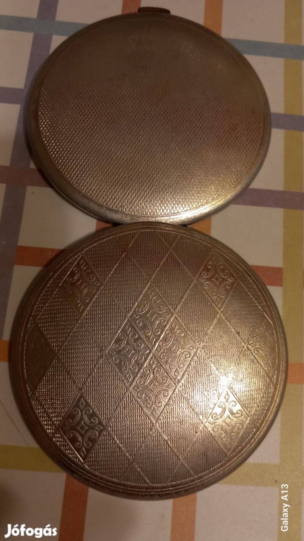 Antik púderes doboz ezüstözött réz,korához képest jó állapotban, 1920 as évek
