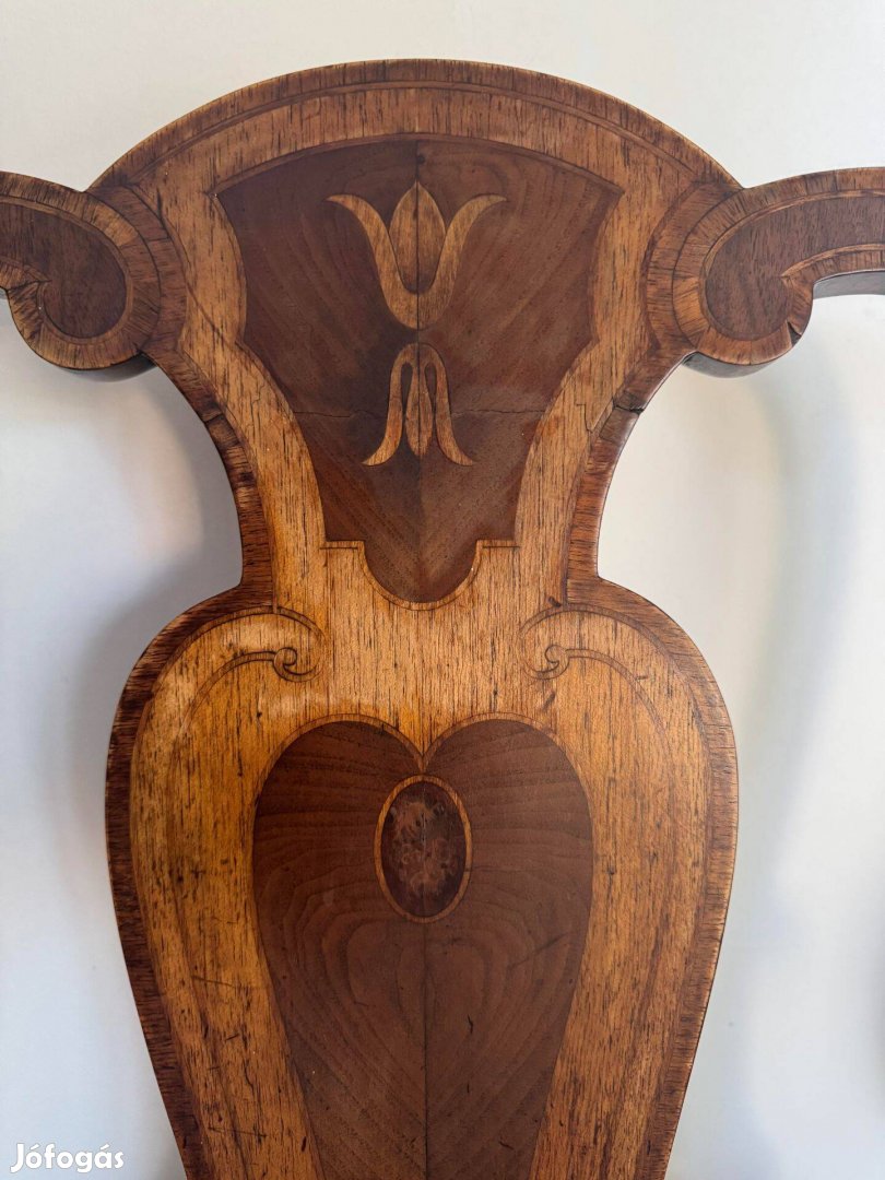 Eladó antik intarziás karosszék jó állapotú. Nemrég volt áthúzva, a szerkezete stabil. magasság teljes: 103 cm, ülésmagasság: 48 cm, szélesség: 62 cm, mélység 53: cm, karfa magasság: 69 cm