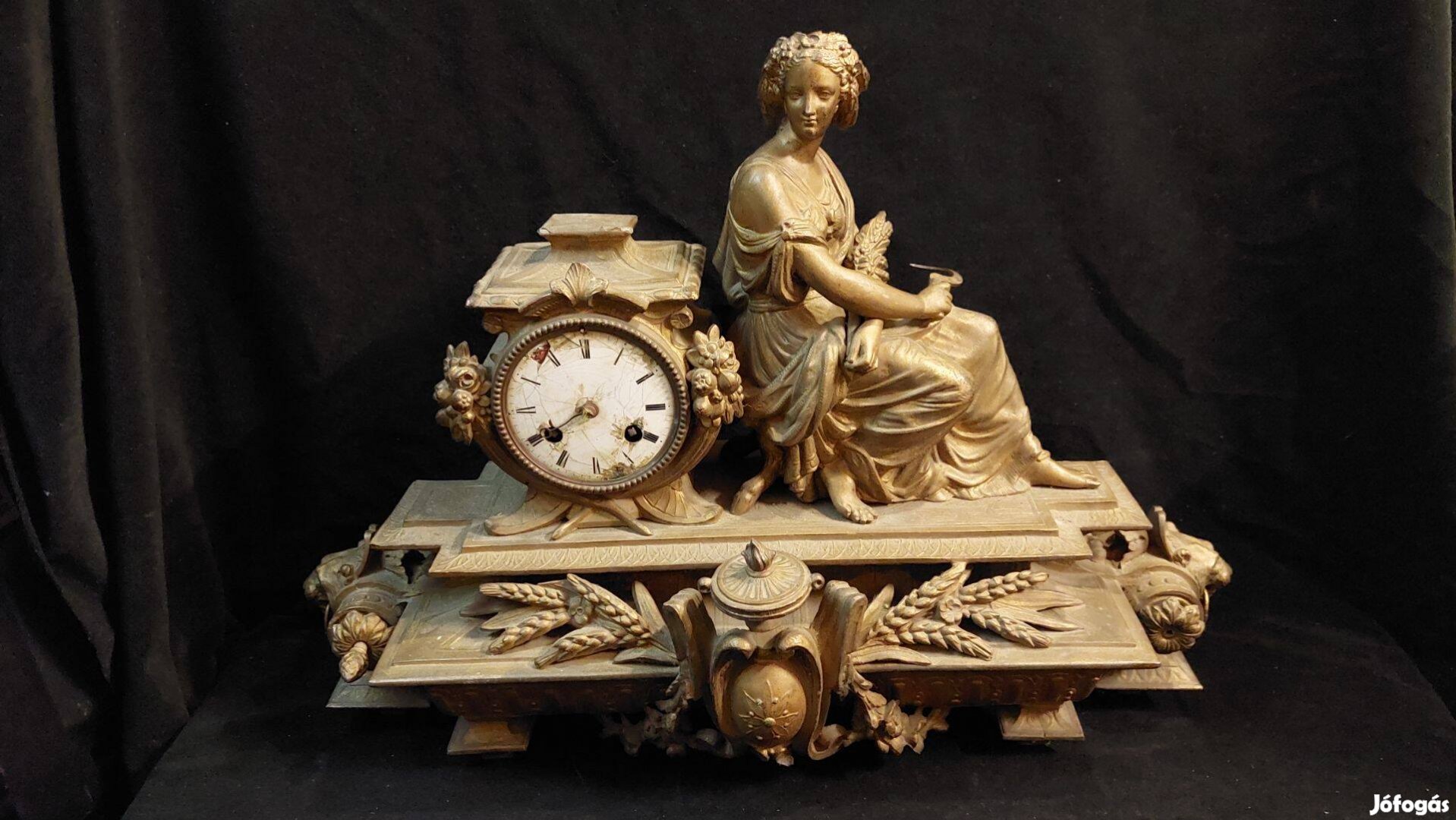 Antik kandalló óra nő szoborral