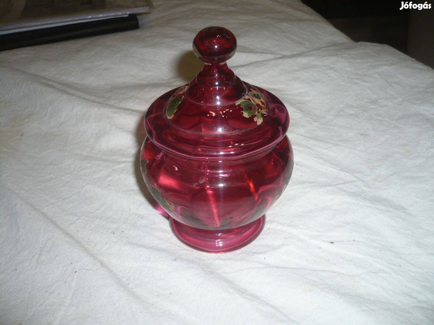 Antik kézzel fúvott üveg cukortartó bonbonier