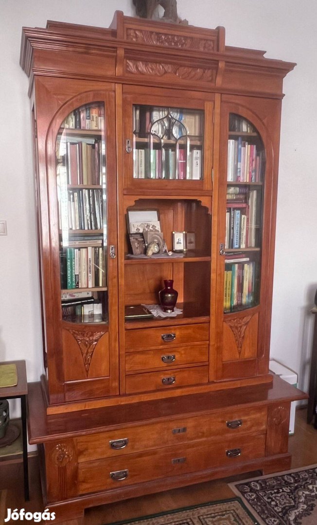 Eladó egy elegáns, faragott antik könyvszekrény, amely az 1900-as évek elején az újpesti enyvgyár igazgatói irodájának berendezése volt. A masszív könyvszekrény korhű, antik állapotban van; a használatból eredő apróbb sérülések csak hitelesítik különleges történetét.