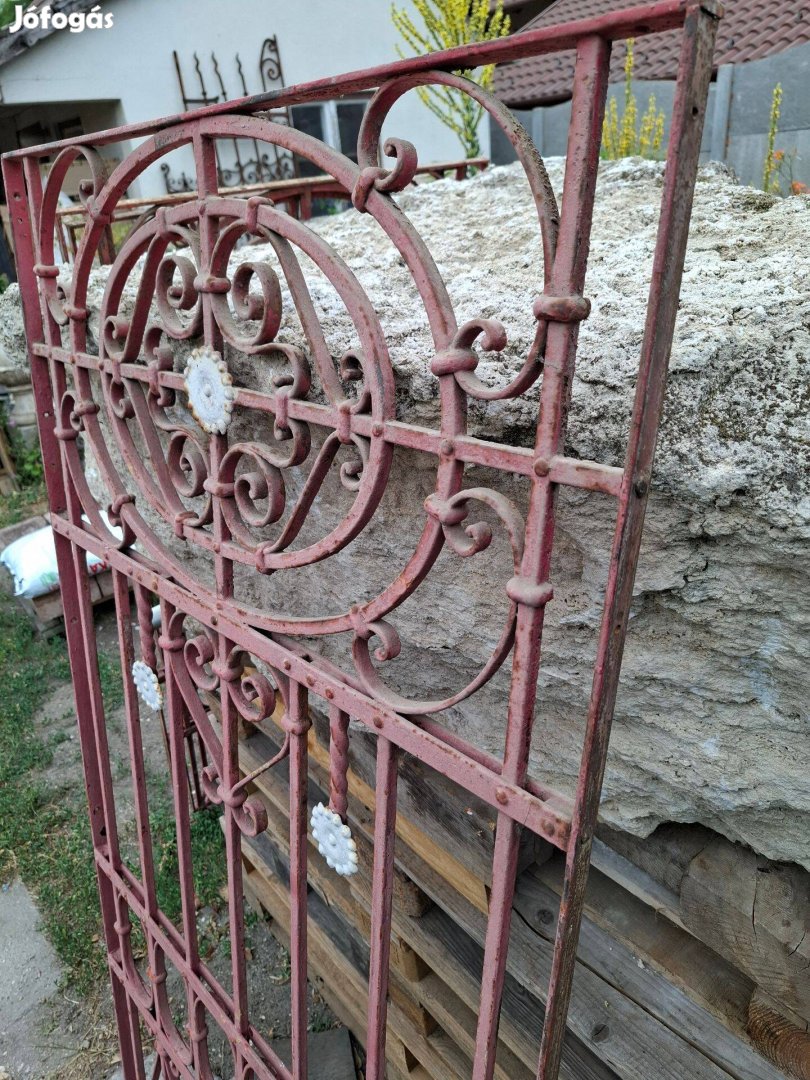 Antik jó állapotú szegecselt kovácsoltvas rács.