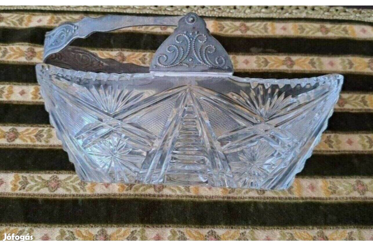 Antik kristály kínáló, fém lehajtható füllel.
