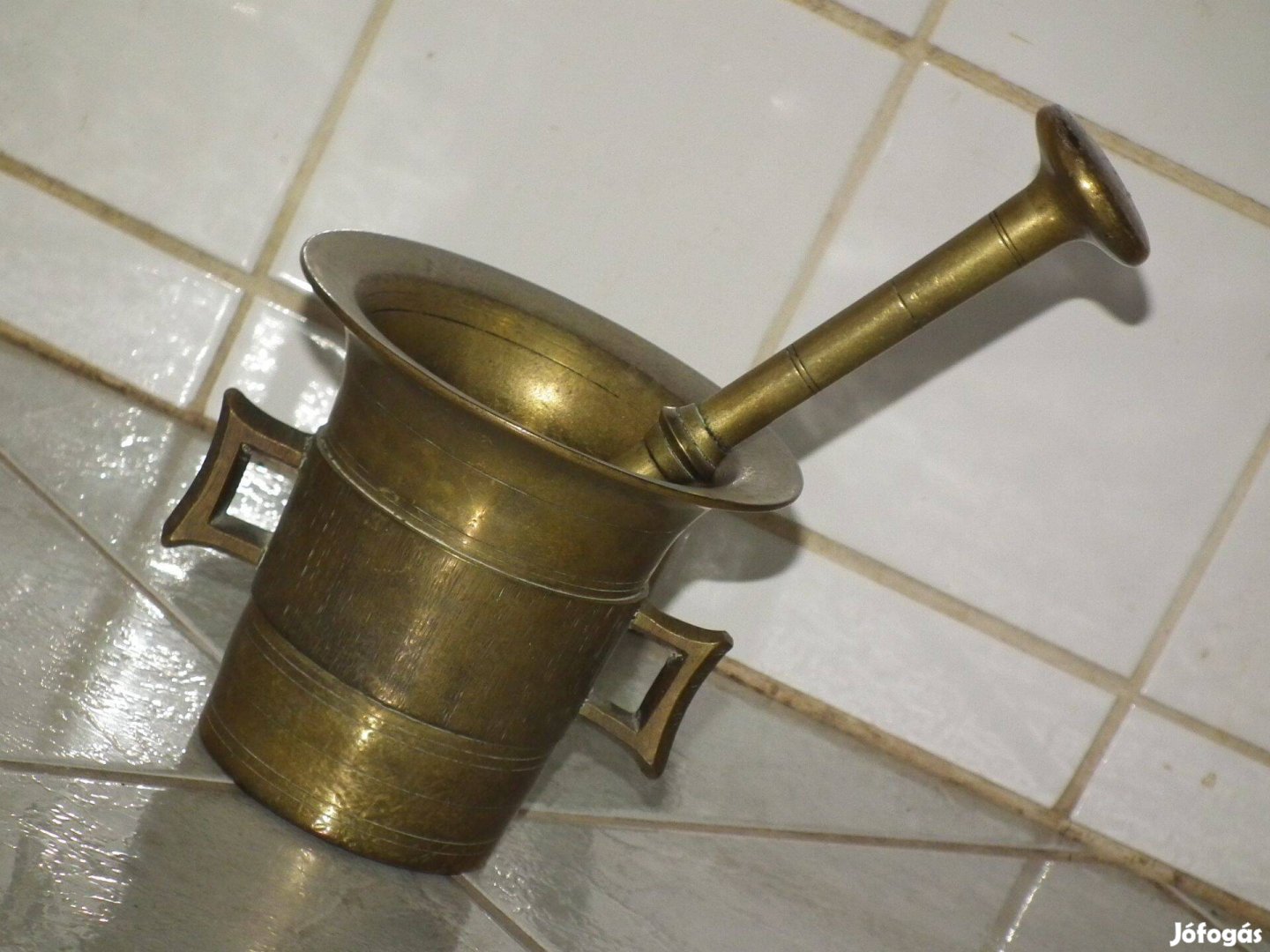 Mérete: magassága 13 cm., szája átmérője 14 cm., alja átmérője 8, 5 cm., törő magassága 25 cm., 2, 25 kg. Alku nincs!!!