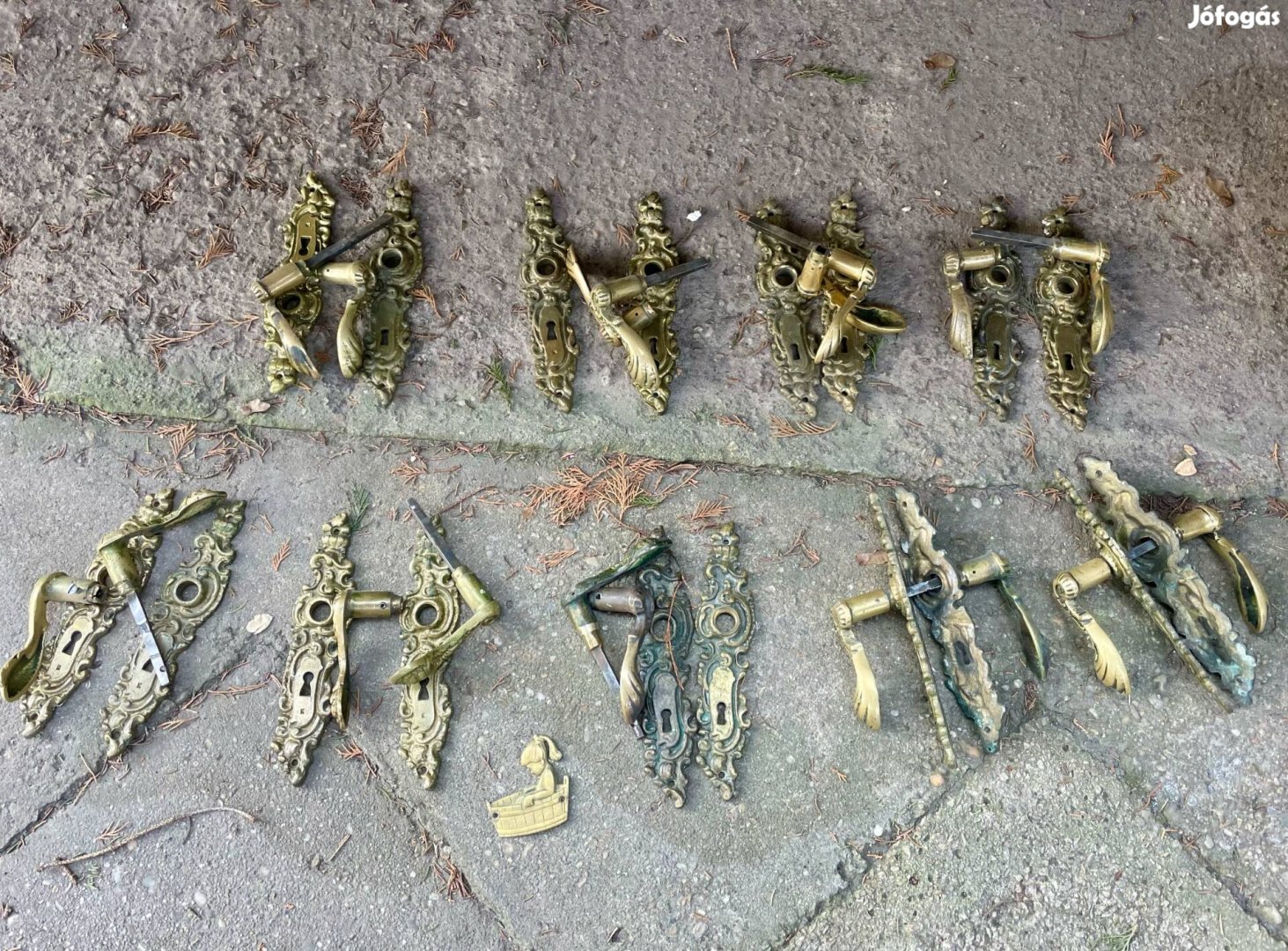 Eladó 11 pár sárgaréz kilincs a 70-es évekből. A képen csak 9 pár van, de valójában 11 pár van, mindegyik hiánytalan. Az ár egy szettre vonatkozik! Több darab vásárlása esetén alkuképes.