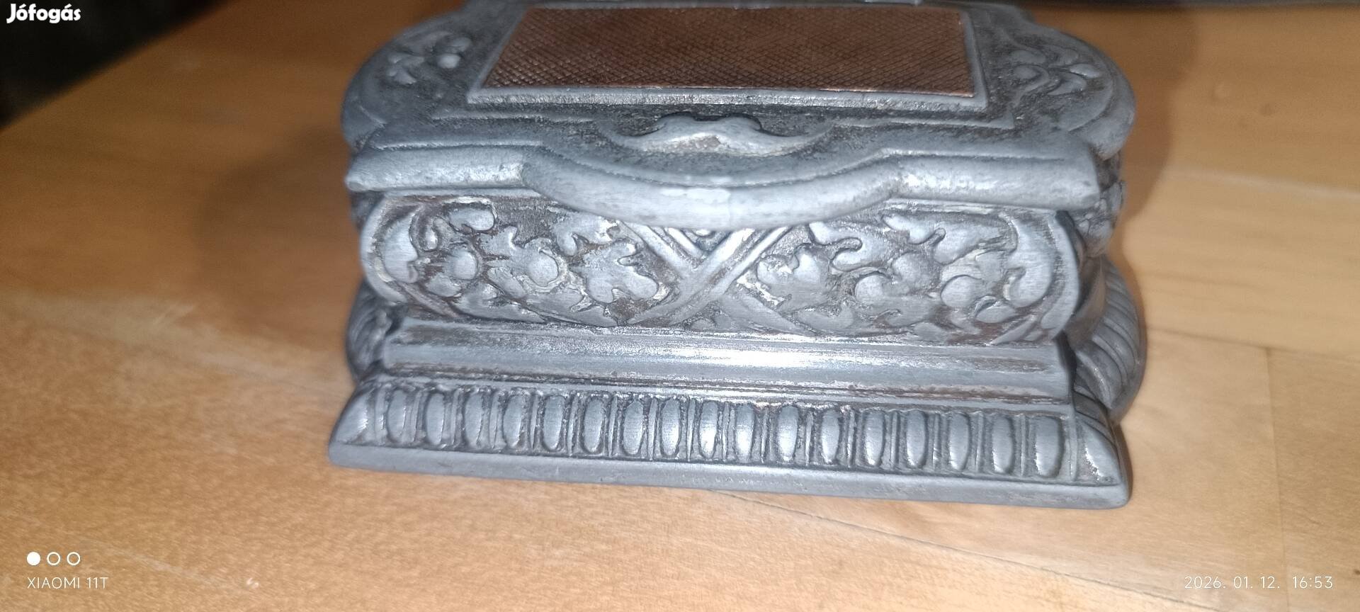 Antik szecessziós ékszerdoboz, ládika ón/spiáter. Utánvét