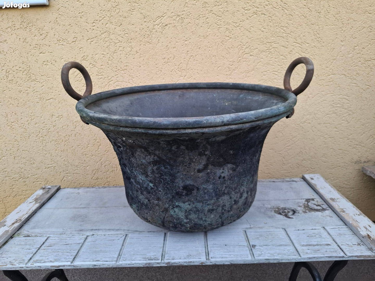 40 cm magas 50 cm átmérőjű. Apró lyukak vannak rajta,dekorációnak ,virágültetésre ajánlom!