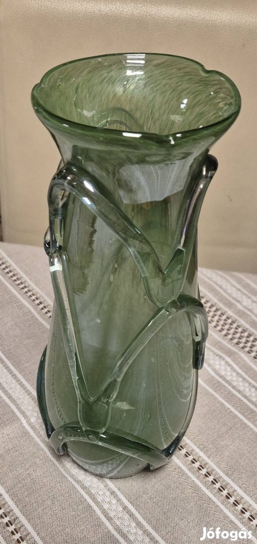 Angol, kézi készítésű "zsinóros" 28 cm magas váza, és különleges francia, szögletes hamutartó.