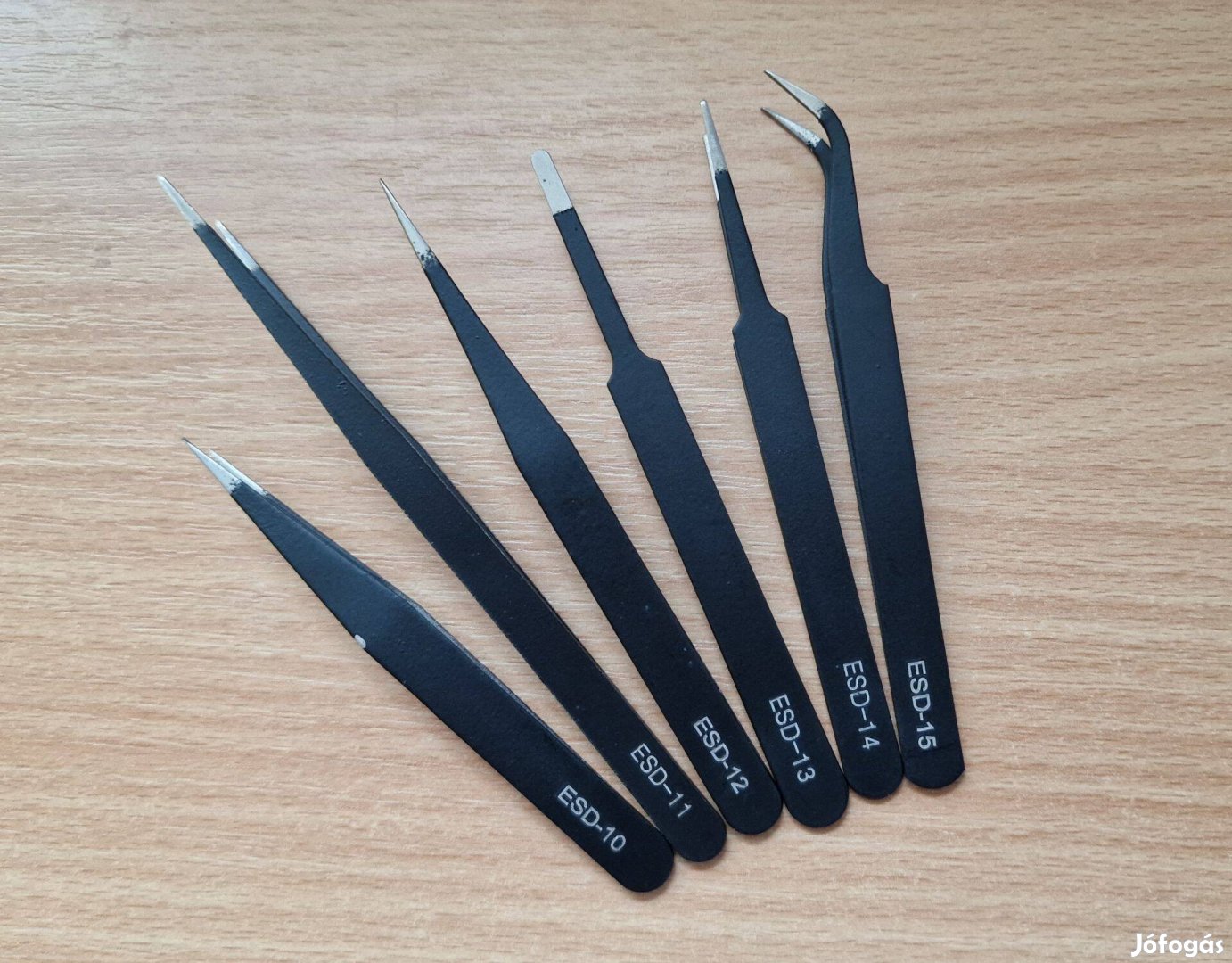 Antisztatikus ESD rozsdamentes precíziós csipesz szett (6db-os)