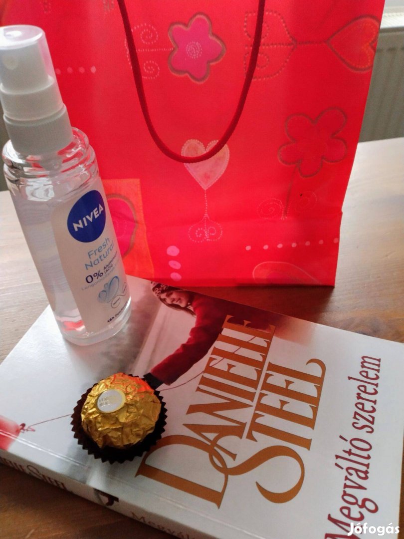 Anyák napjára, névnapra, születésnapra, vagy bármilyen évfordulóra szép és hasznos ajándék Danielle Steel Megváltó szerelem című alkotása. A népszerű írónő minden műve élvezetes olvasást kínál, ezért jó ajándék. A könyv új, nem használt, nem rongált. Az ajándékhoz tartozik egy darab 75 milliliter tartalmú, bontatlan Nivea pumpás dezodor, 0% alkoholtartalma miatt érzékeny bőrre is kiváló és egy kis édesség.