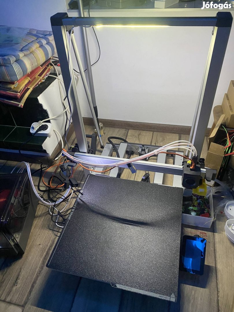 Eladó a 2025 decemberben vásárolt keveset használt Kobra 3 Max Combo nyomtatóm. Kb 300 órát nyomtattam csak vele. Eladás oka, hogy nálam sok helyet foglal ezért inkább egy s1-re cserélném. Kettő print bed van hozzá, mivel az egyik szélén a fúvóka felmart egy kb 8 cmes csíkot. Ettől független maga a nyomtatólap többi része valamint a másik oldala ugyanúgy használható. Ace proban cserélve lett az egyik tengely, viszont megvan az eredeti alkatrész is azt is adom hozzá. Adok még hozzá egy 0.8-as nozzle-t is. Ára 519 euro (kb 200000 ft). Budapesten megtekinthető, kipróbálható. (Nem feltétlen eladó)