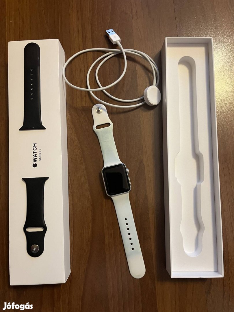 Jó állapotban lévő karc mentes Apple Watch Series 3 pótszíjjal (fekete) eladó. A fehér szíj enyhén beszíneződött.
