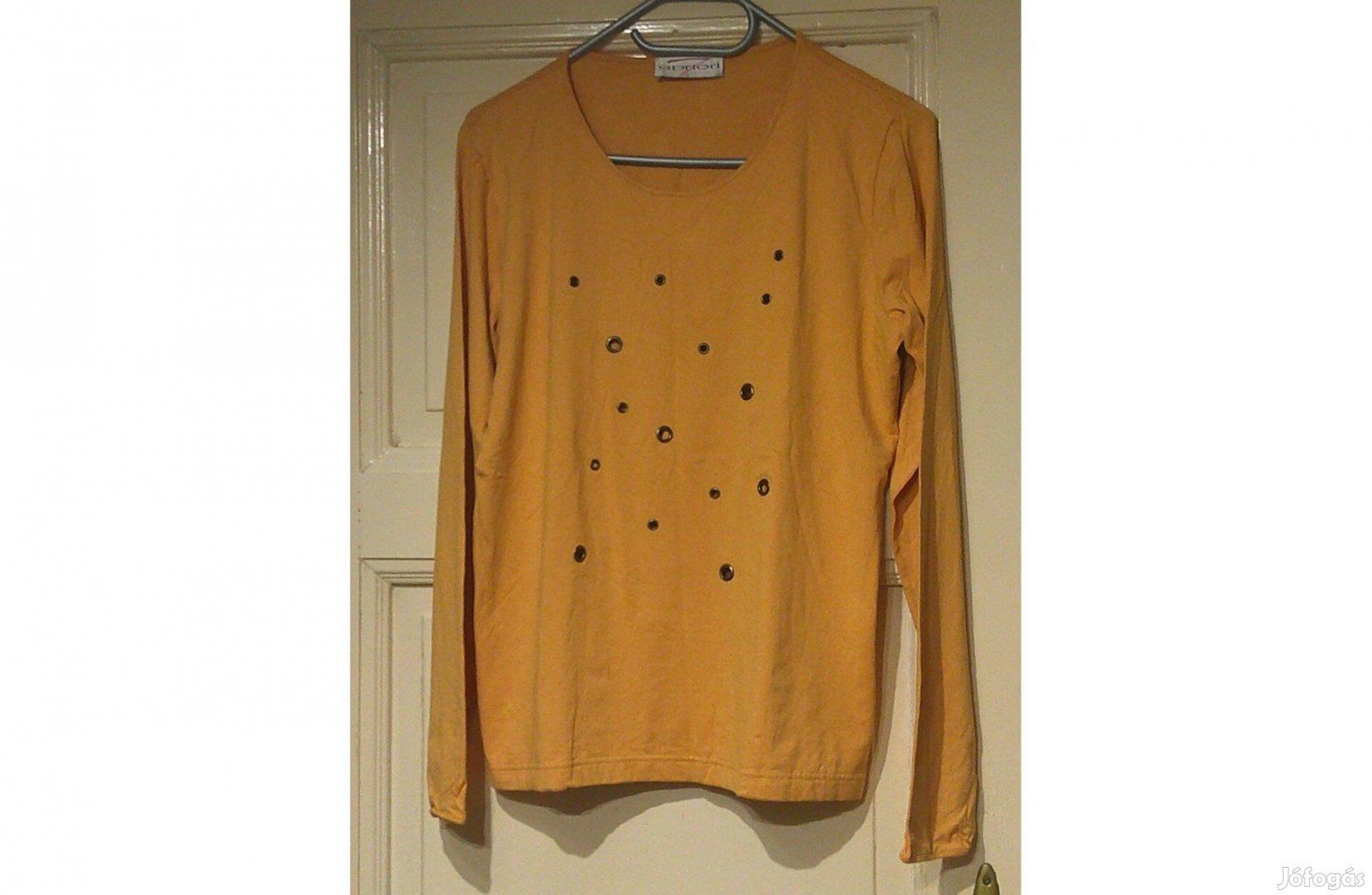 A képen látható aranysárga női felső eladó.