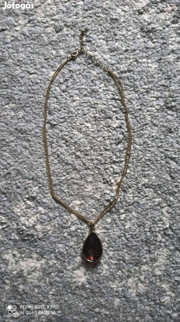 Arany színű bizsu nyaklánc bordó köves medállal új állapotú 2500 Ft-ért eladó.