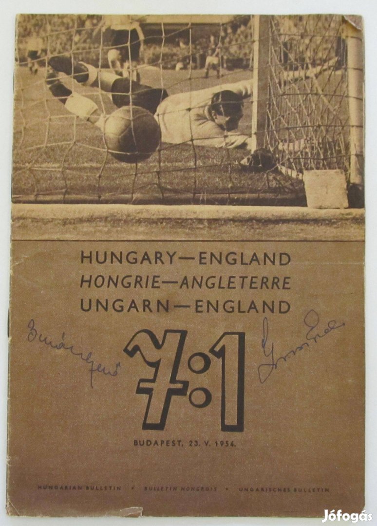 Aranycsapat Puskás. Magyar-Angol 7:1 dedikált bulletin Grosics Buzánsz