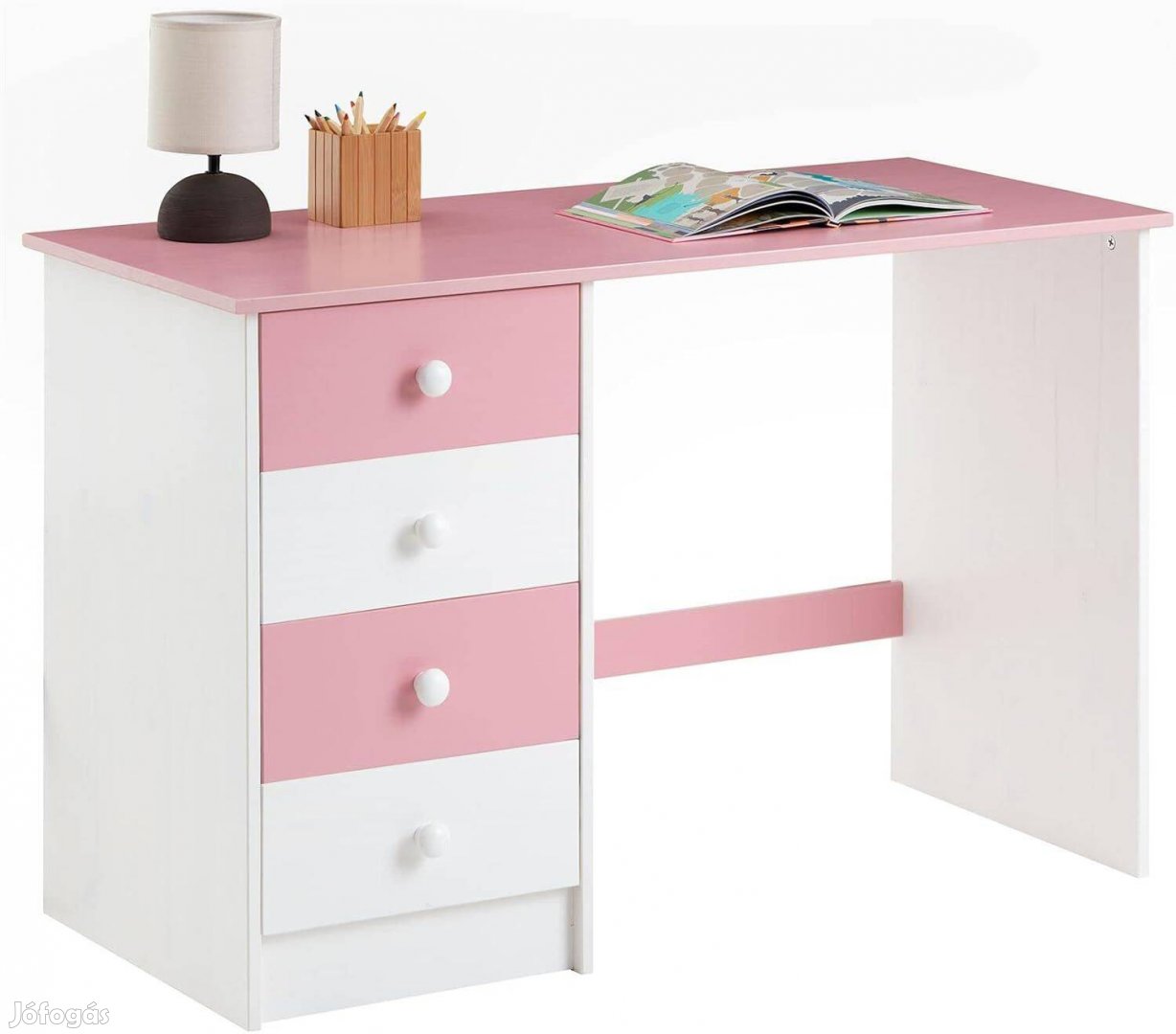 Arne 4 fiókos fenyő íróasztal (fehér-rózsa) 7241