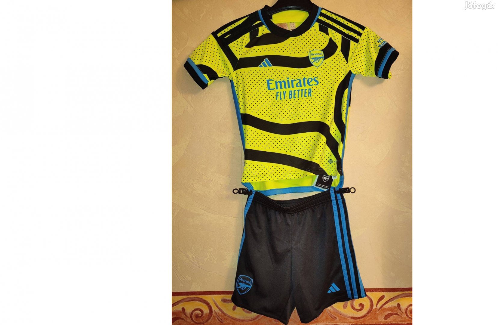 Elől Arsenal címer és adidas logó valamint Emirates Fly Better felirat