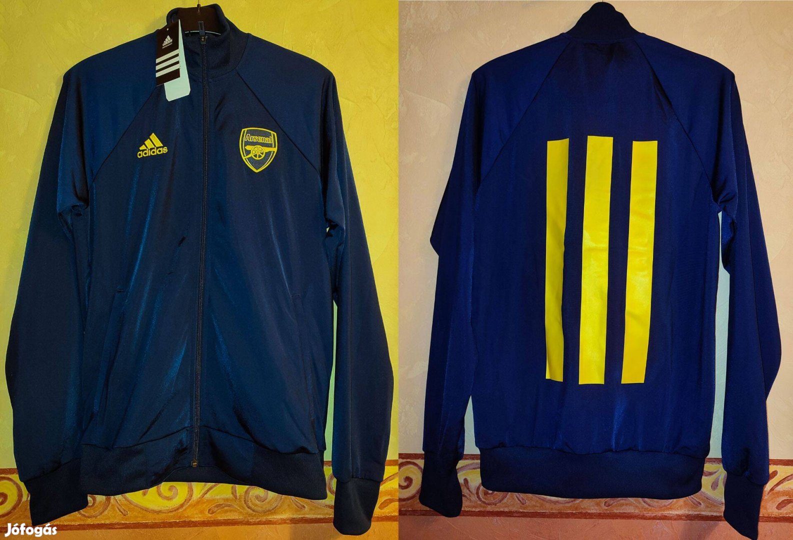 Arsenal eredeti adidas címkés cipzáras sötétkék sárga felső (M-es)