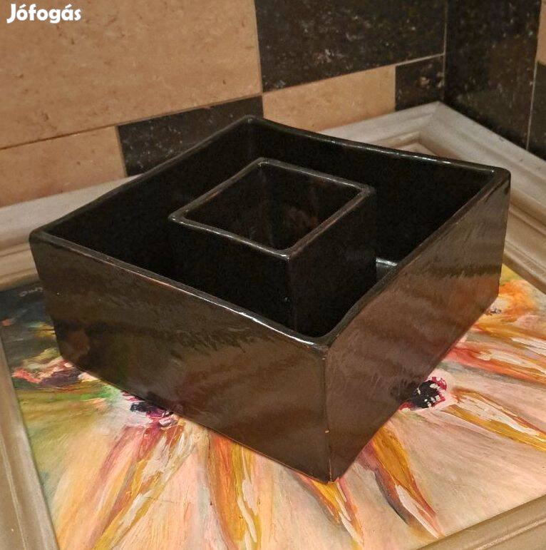 Art Deco stílusú geometrikus kerámia tál mázas ,jelzett.. Mérete: 24x24 cm 11 cm magas.