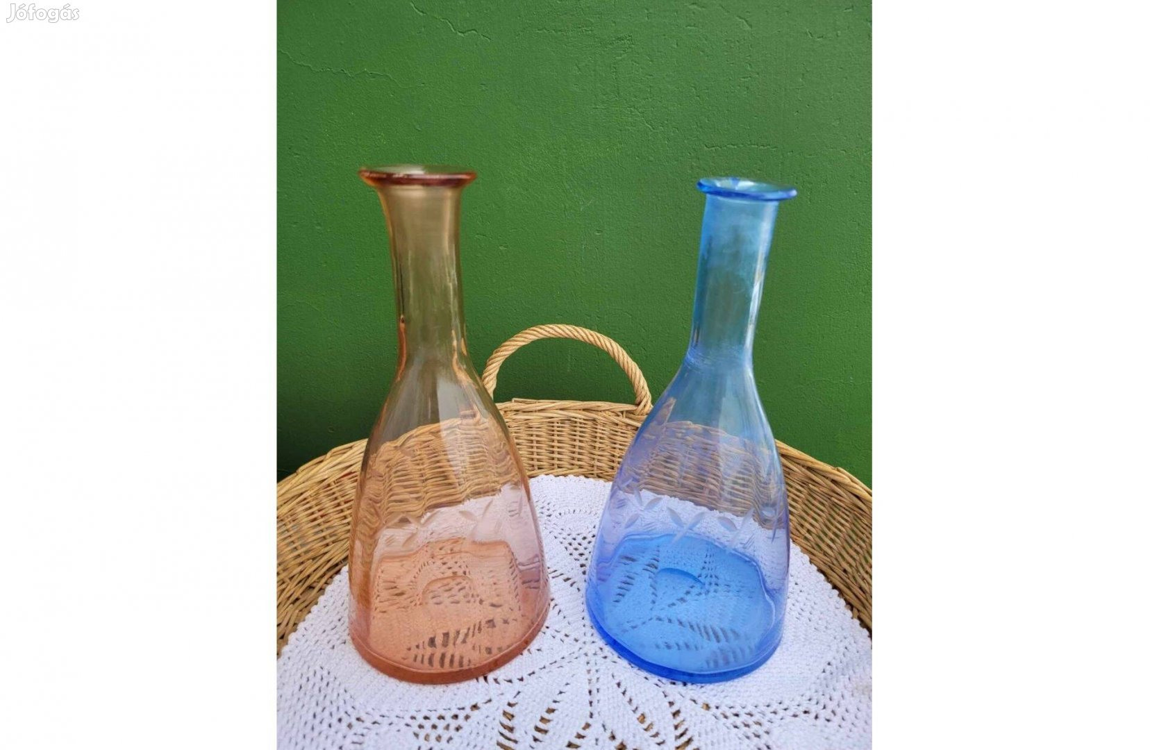 Eladásra kínálom a képen szereplő Art Deco színes boros üvegeket, dekantálókat. A képek magukért beszélnek. Körbe fotóztam. Ritka, szép, különleges, metszett mintás. Sajnos a kék szája csempe. Megadott ár a 2 db-ra értendő.