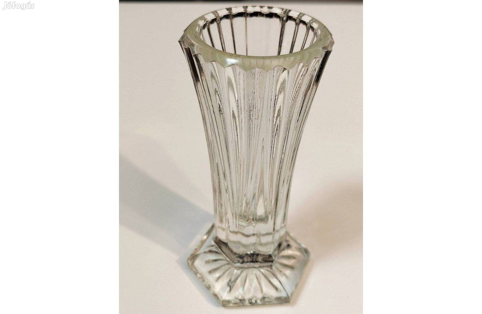 Vintage Art Deco váza, bordázott felületű, felül hullámos szélű, alja hatszögletű.