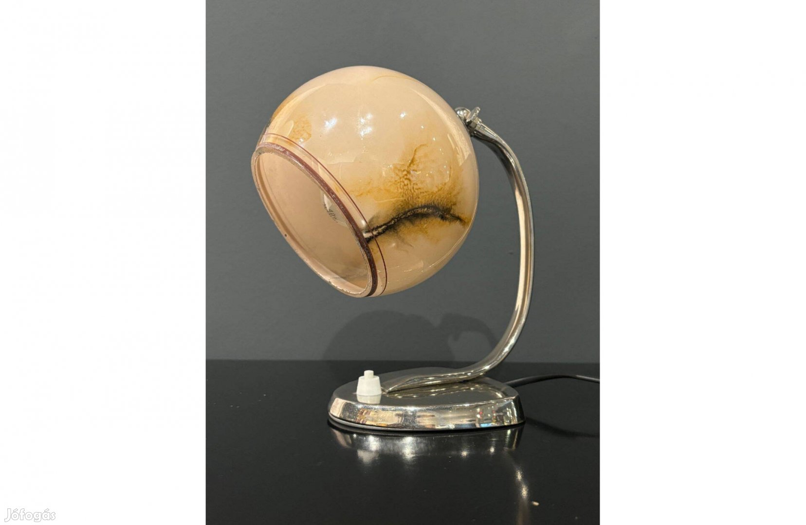 Art deco - Bauhaus asztali lámpa nikkelezett - márványozott ernyő felú