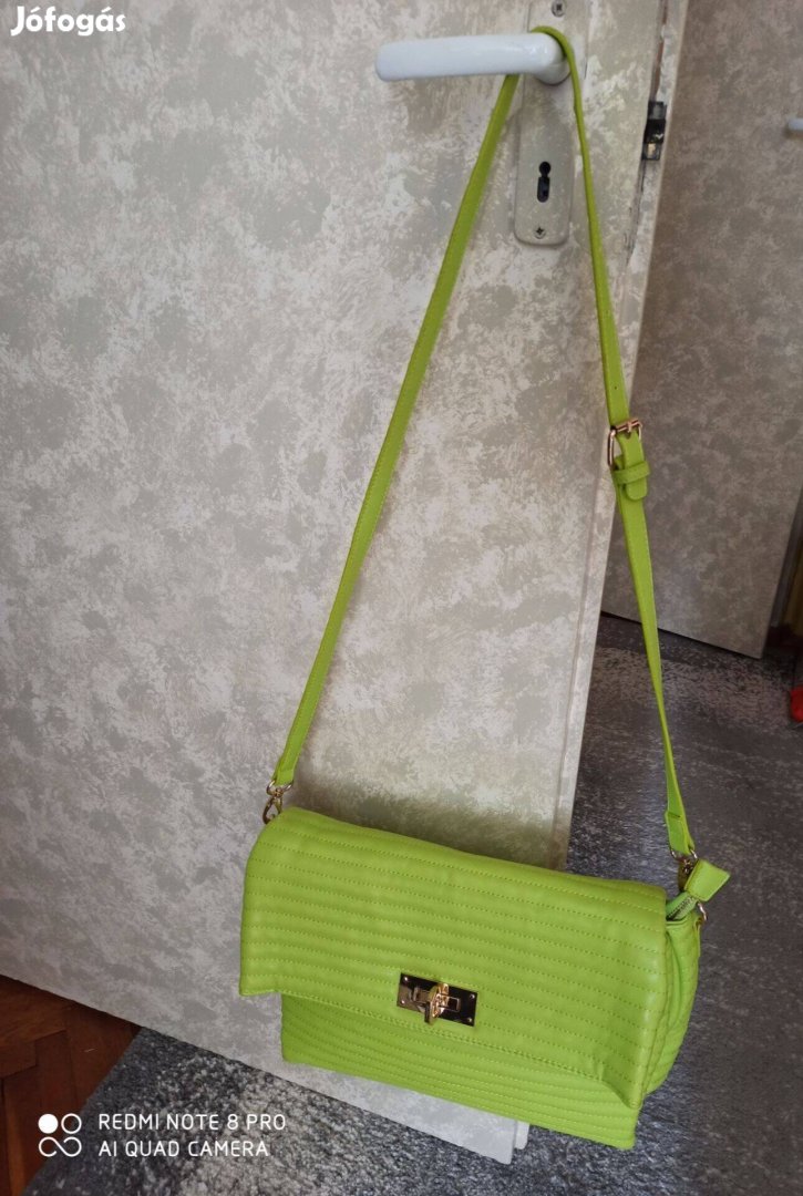 Asos világoszöld (Lime) színű minőségi műbőr pakolós válltáska, 3 fakkos, a középső fakk cipzáros, pántja állítható, 6 lyuk van rajta, 6 féle méretre lehet állítani új állapotú 3500 Ft-ért eladó.