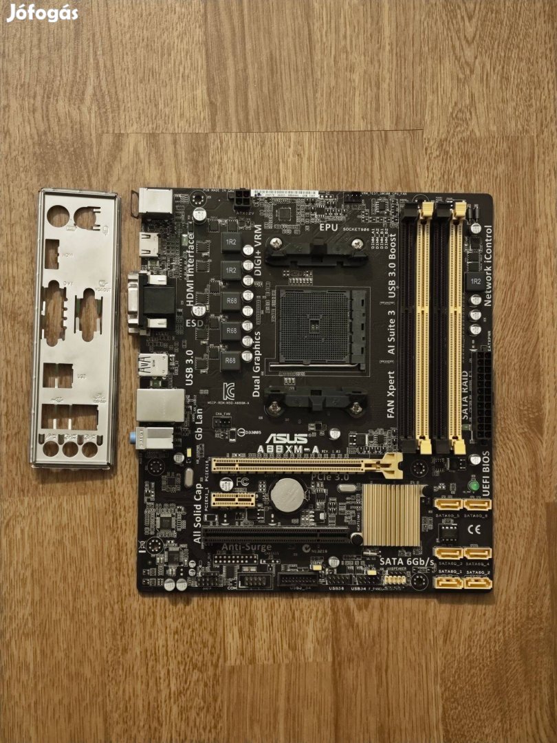 Eladó a képeken látható Asus A88XM (FM2+) alaplap az eredeti hátlapjával együtt.