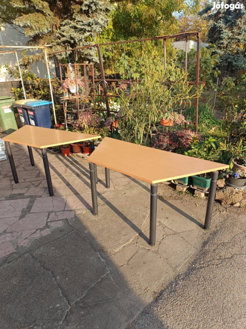 eladó a képen látható 4 db egyforma trapéz asztal. nagyon erős fém vázzal , szintezhető lábbakai , darabja 6e