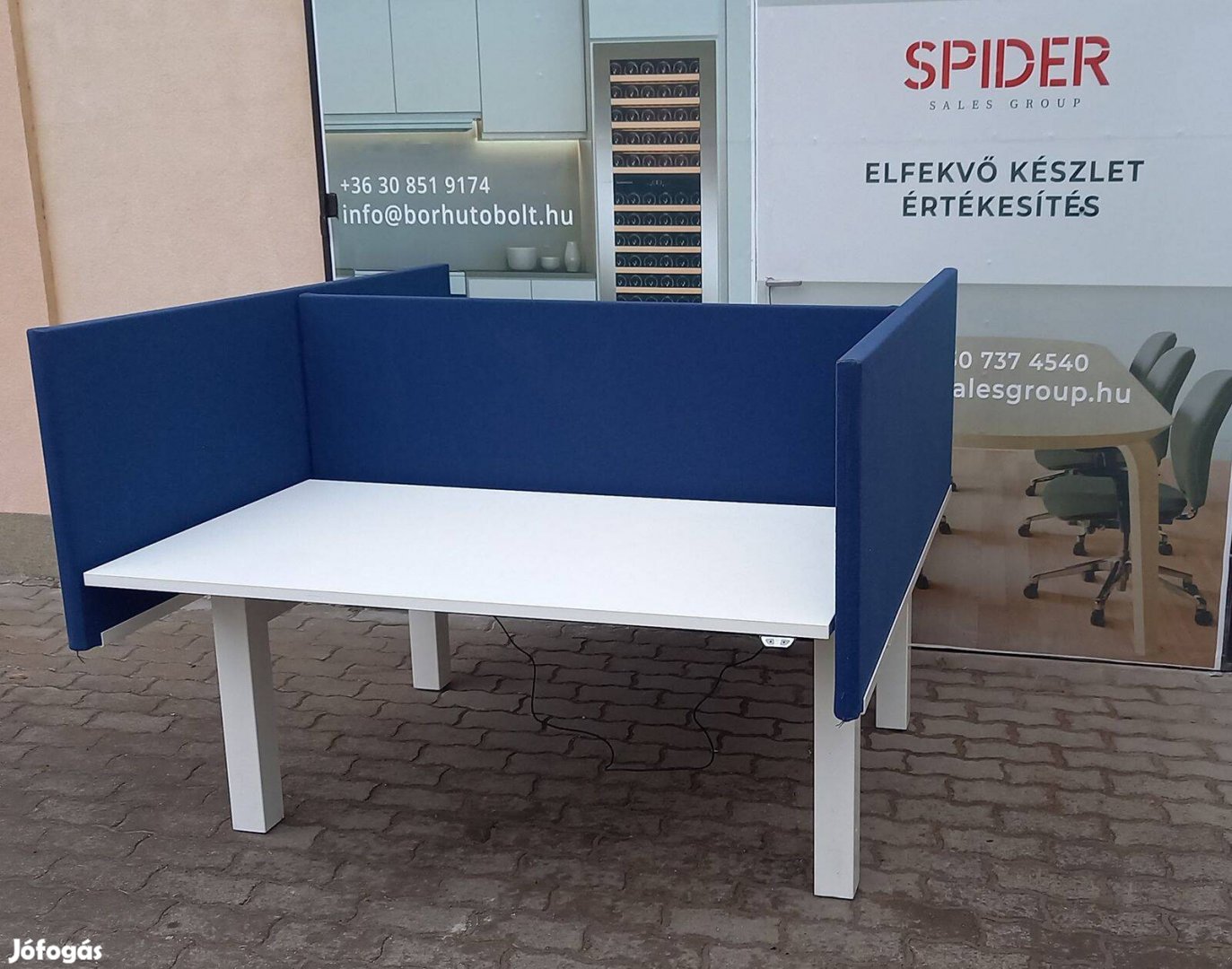 Elektromosan emelhető íróasztalokhoz (Hon Move Tandem - 2 személyes) tartozó asztali paraván, térelválasztó eladó budafoki raktárunkból. A használt paraván a képen látható oldalsó elem, kék színben (vagy zöld) kapható. Kiváló állapotban van, személyesen megtekinthető előzetes időpontegyeztetést követően.