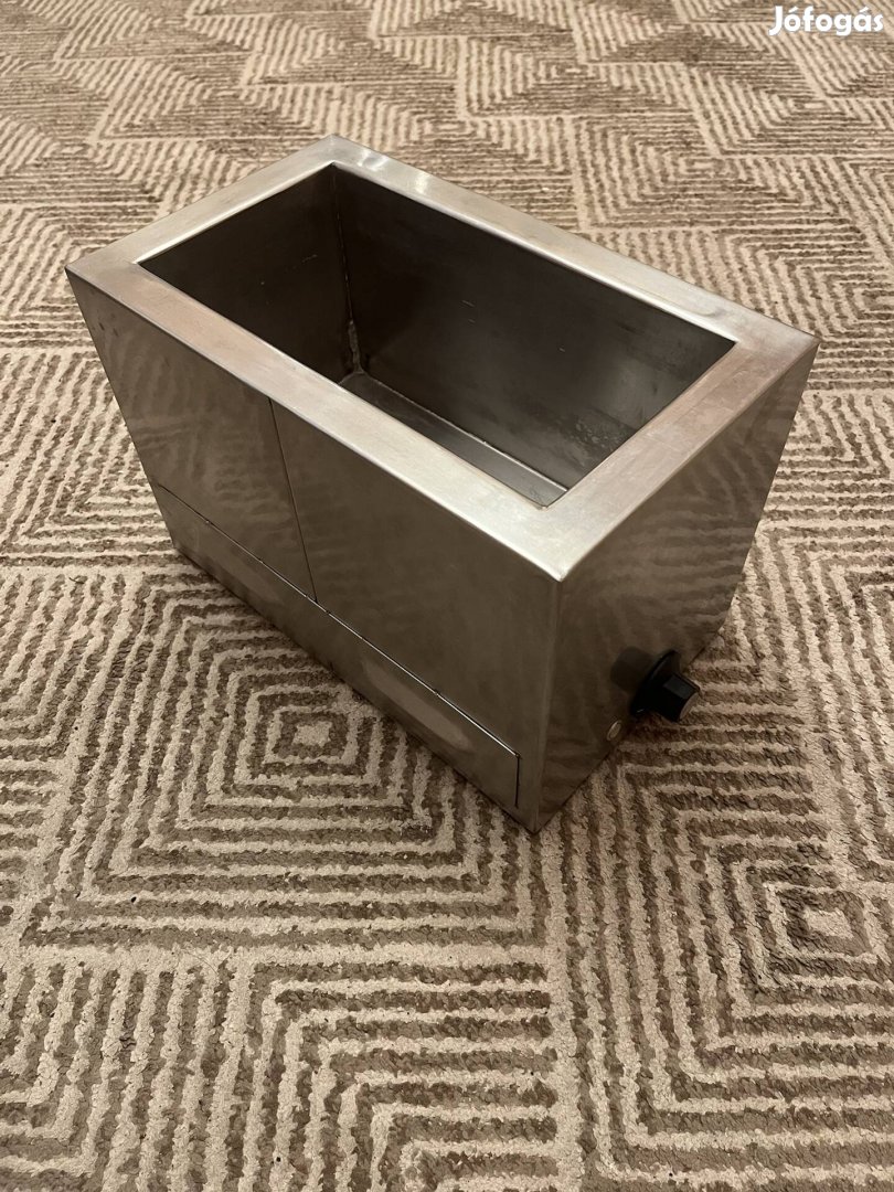 vízfürdős melegentartó, virsli főző. Teljesen rozsdamentes. 30-110 fok között állítható be a hőfoka. Mérete: 25x22x37 cm, belső mérete 15x17x30 cm. Érdeklődnek privátban. Budapesten át vehető. Ára 15000 Ft.
