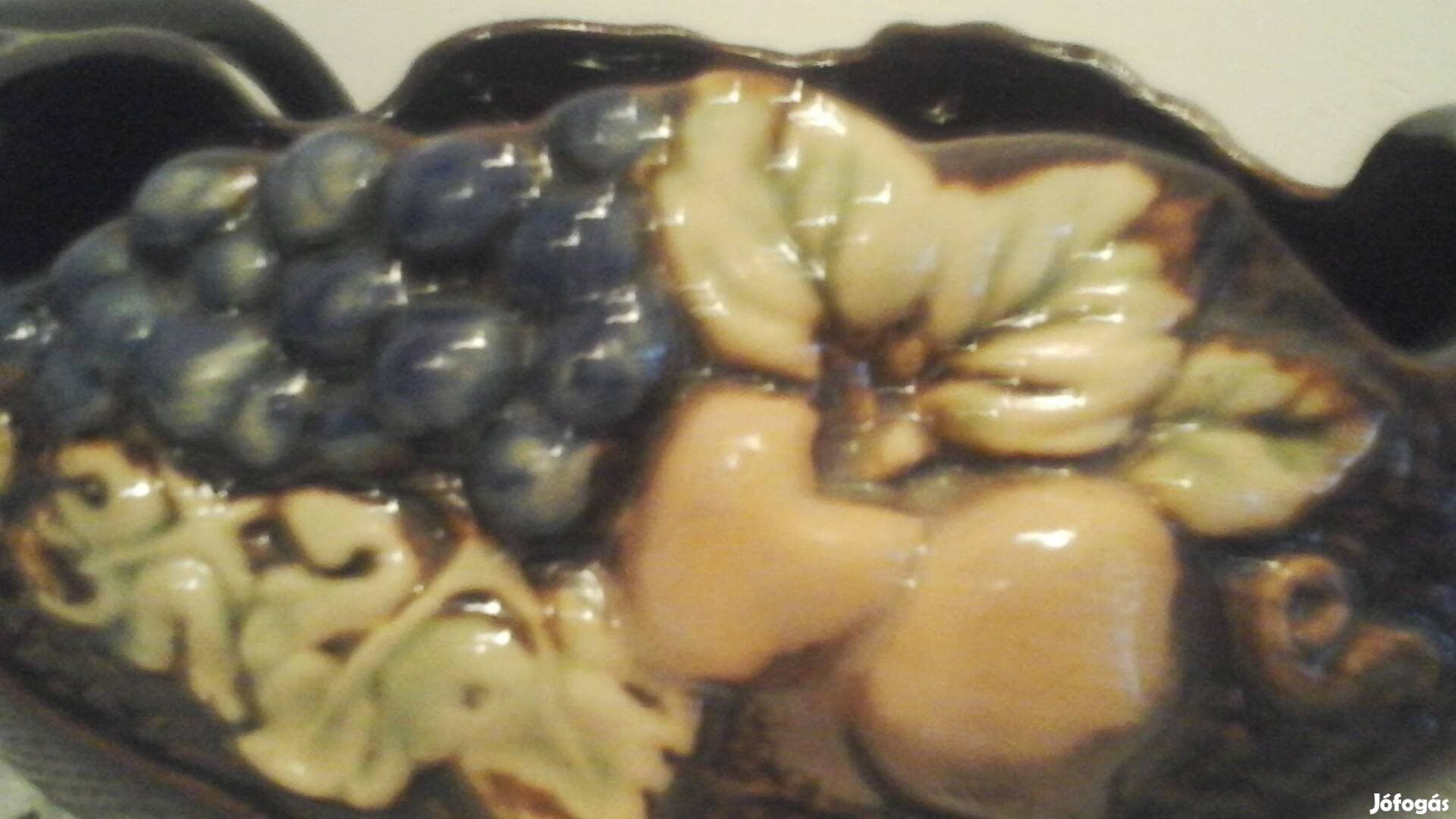 Régi domború mintázatú majolika asztalközép mázalatti jelzéssel.
