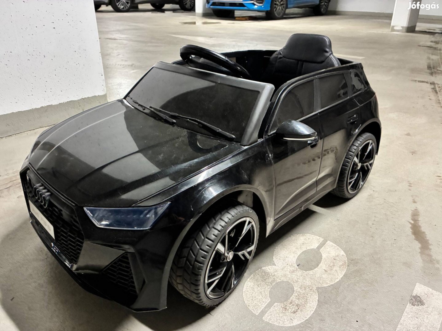 Eladó egy alig használt elektromos kisautó (Audi RS6 típusú) töltőkábellel.