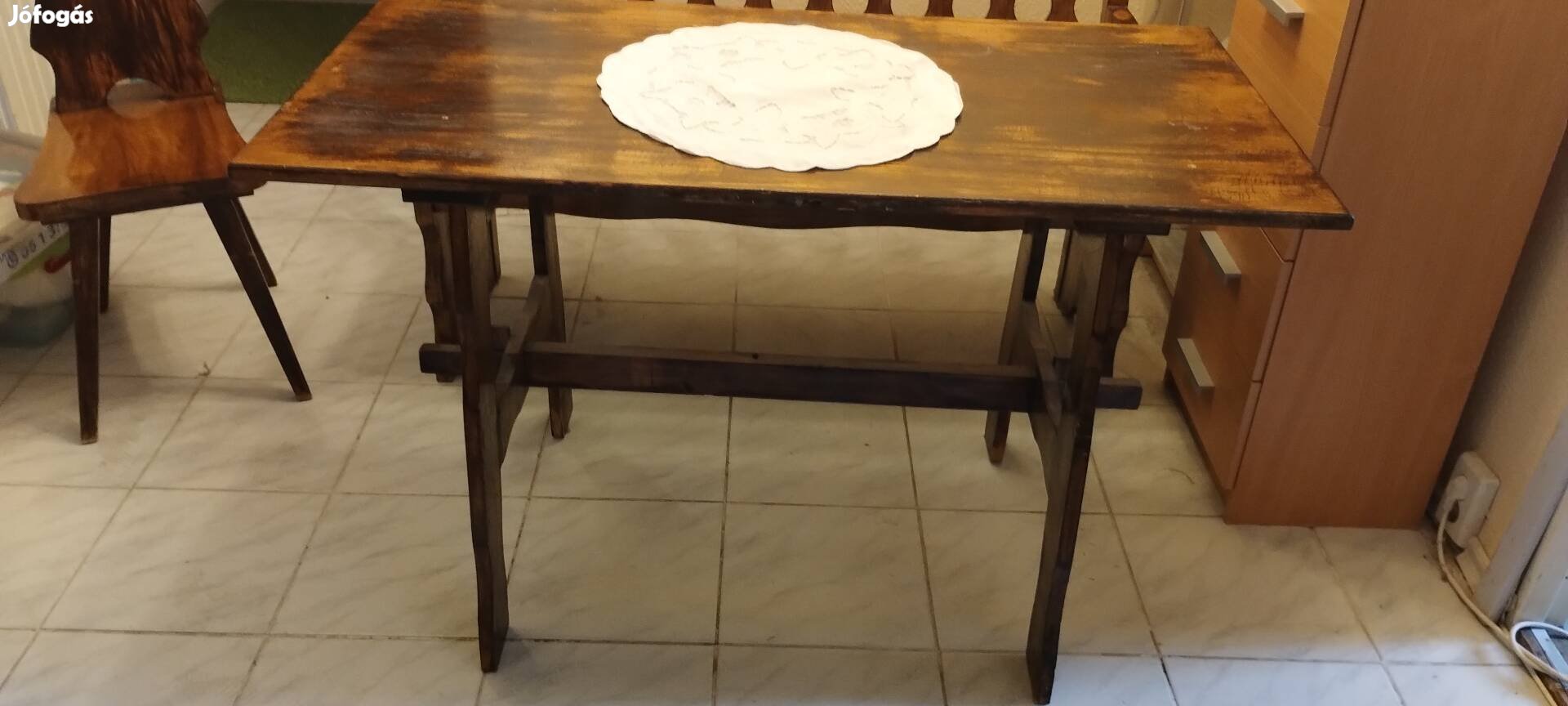 Helyhiány miatt eladó retro fa étkezőasztal székekkel és paddal.