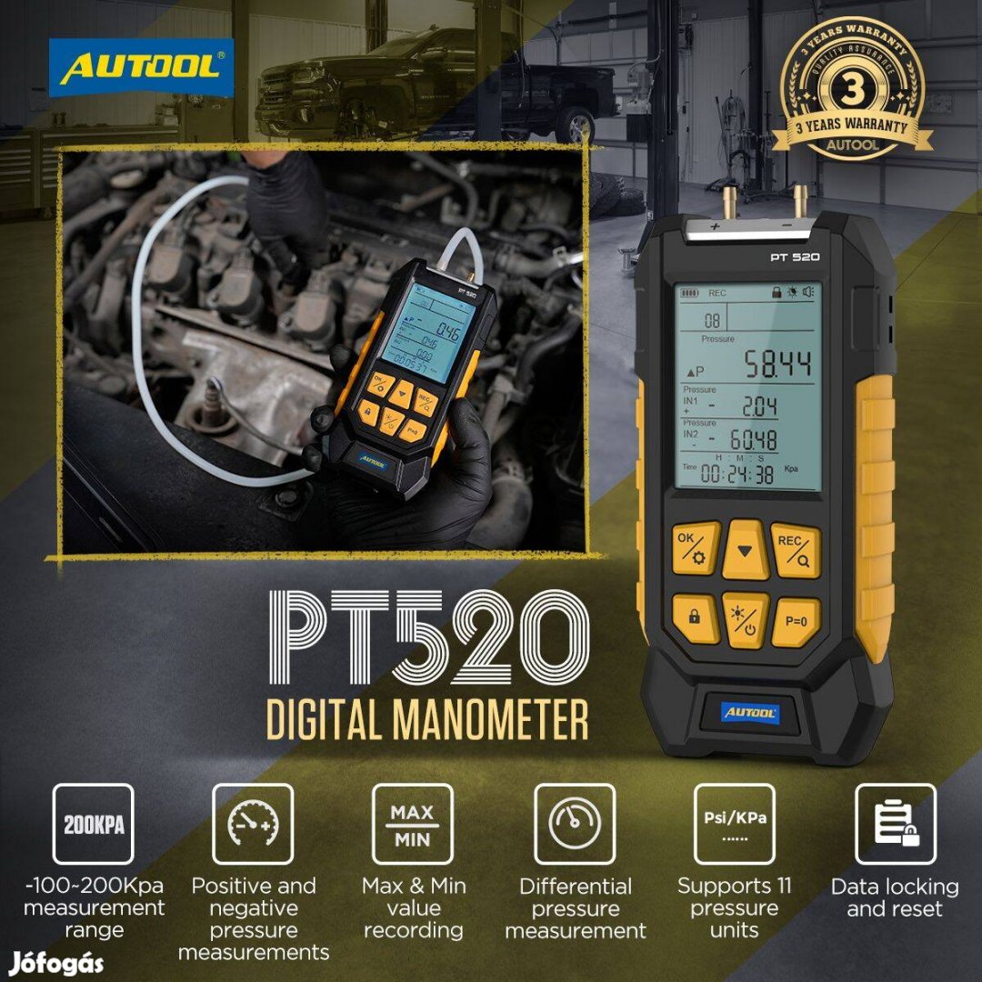 Autool PT520 Digitális Differenciál Nyomásmérő / Manométer