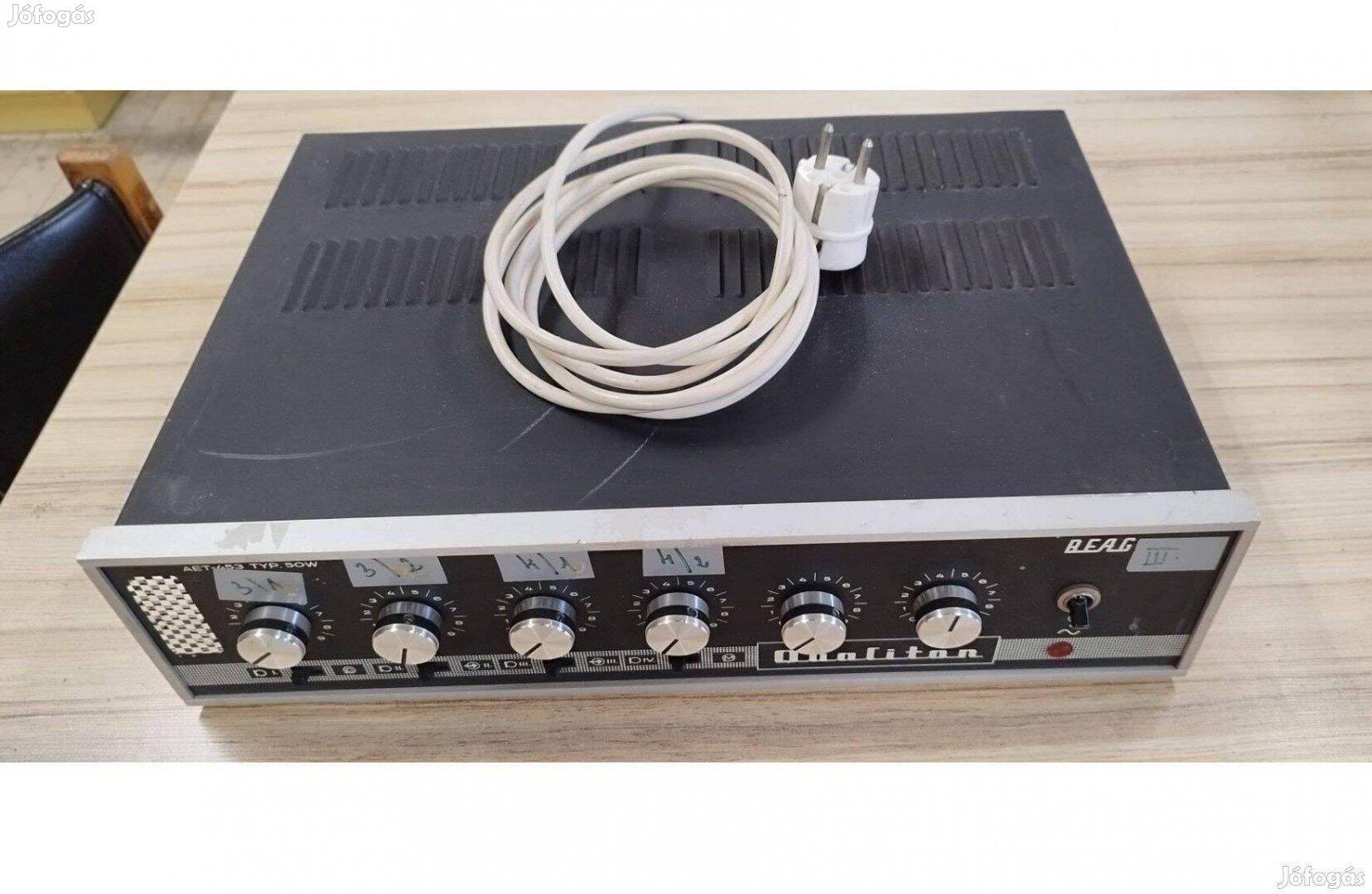 Eladó a képen látható használt, jó állapotú Beag qualiton keverő erösítő 50w os. Keveset volt használva, működőképes állapotban van, ki lett próbálva, potik nem recsegnek, eredeti izzó van benne ami jelzi az üzemi állapotot.