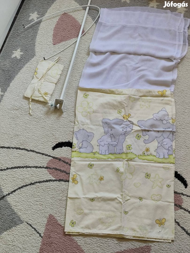 Eladó egy kiságyra szerelhető baldachin, függöny+tartó vas,,, 140x200 as függöny