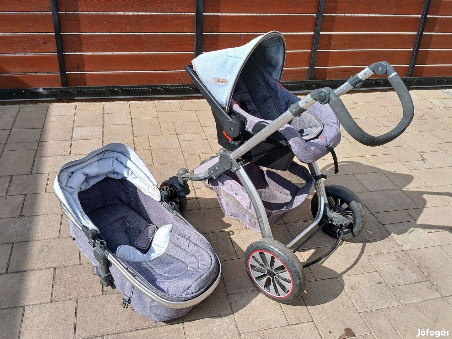 2in1 babakocsi, mózeskosár, illetve autós hordozó, ami szintén a babakocsira szerelhető, mindkét irányban
