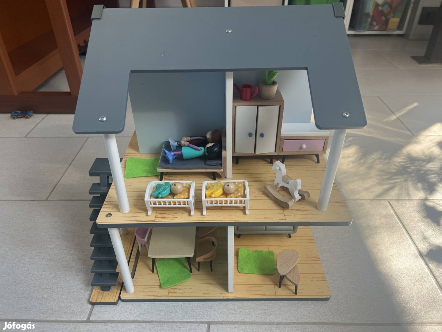 Szép állapotú fából készült babahaz eladó rengeteg kiegészítővel!