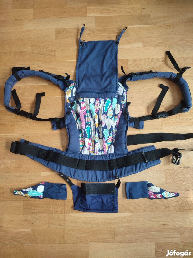 Használt, jó állapotú Liliputi csatos hordozó eladó. Kék színű, tollas mintával. Minden alkatrésze megvan: terpesztágító, textilzsák, doboz. Kényelmes, erős, jó anyagú, mi nagyon szerettük. Előre, hátra csatolva is hordható.