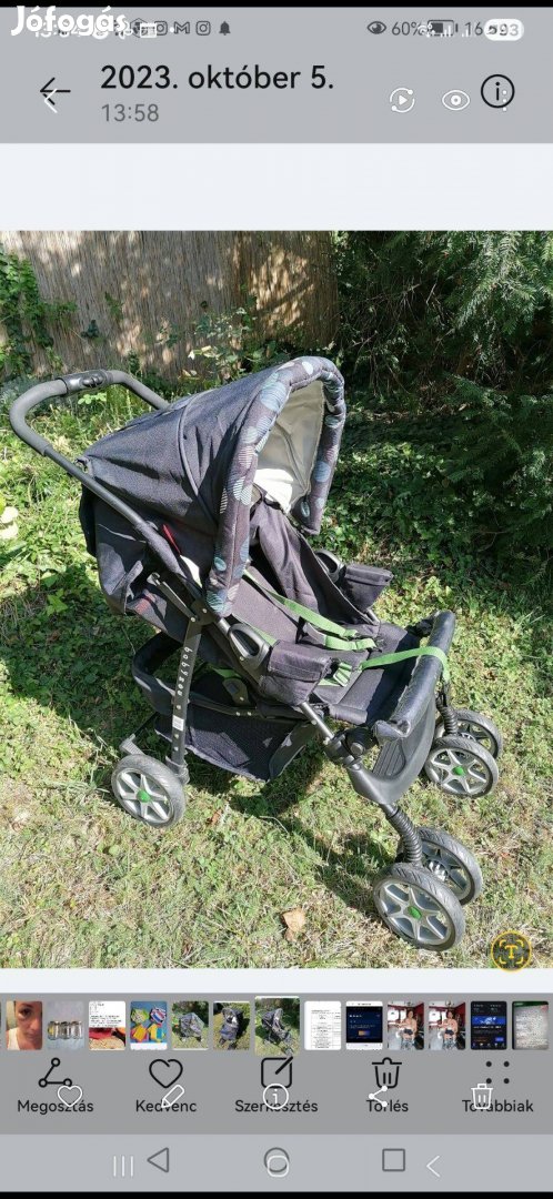 Eladó a képeken látható kék babakocsi. Összecsukható, tartozékokkal, cumisüvegtartó, bevásárláshoz tartó.