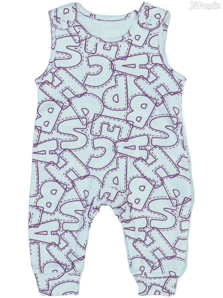 Minta: Színes betűkkel; Jellemzők: Gombos a vállán, Lába között patentos, Lábfej/Csizma nélnüli
